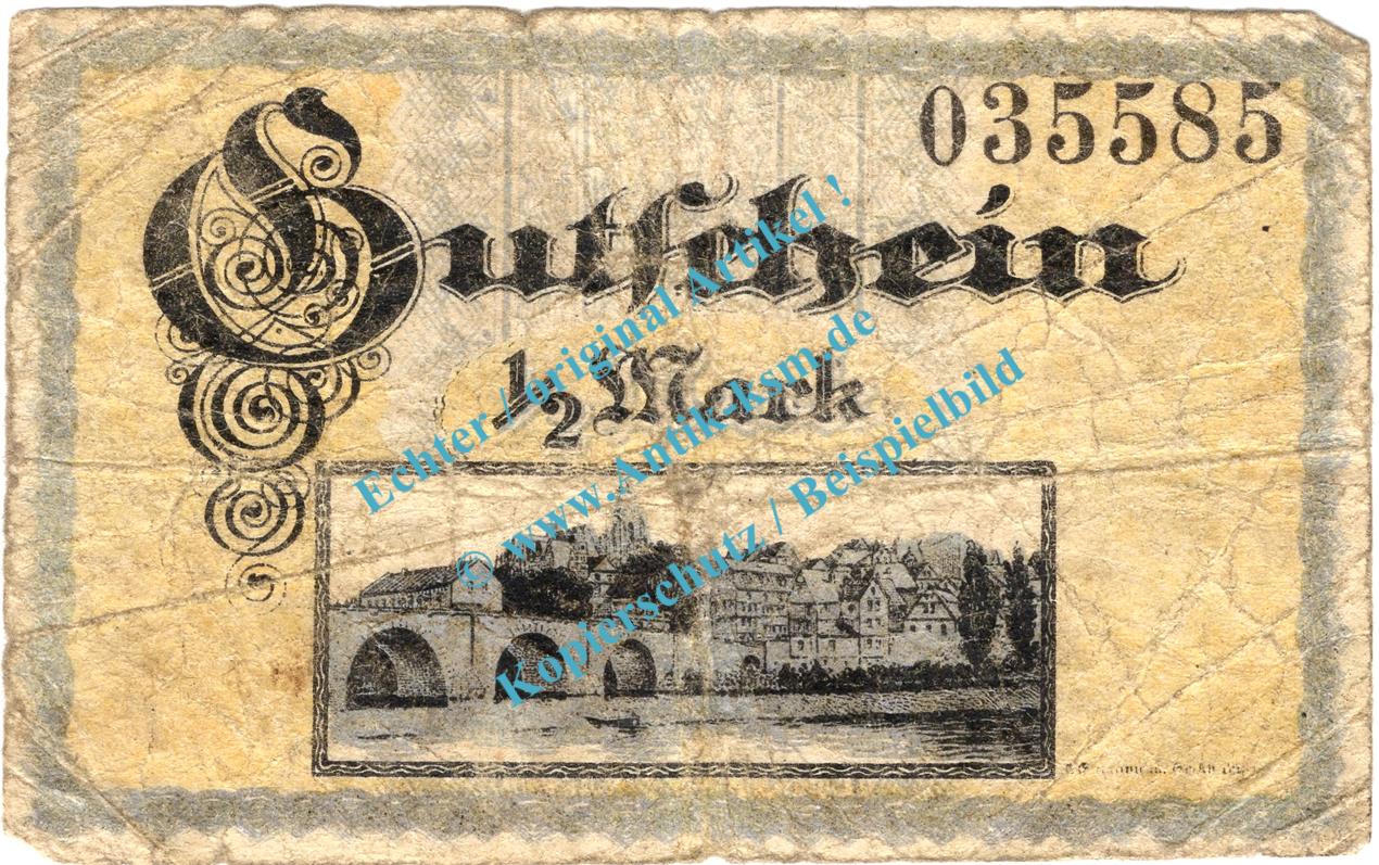 Das Notgeld Set besteht aus : 1/2 Mark Schein , Udr. strohgelb