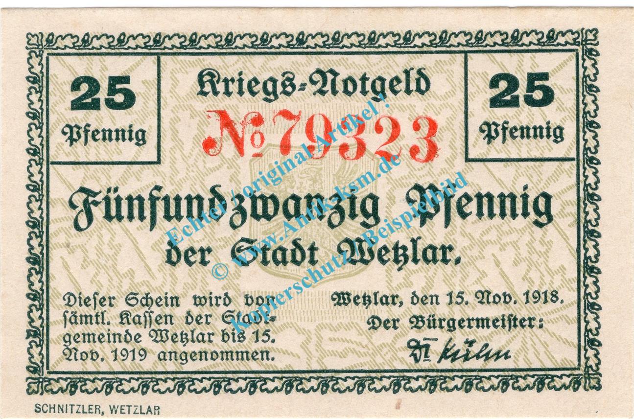 Gutschein / Banknote der Stadt Wetzlar , Kleingeldersatz Verkehrsausgabe