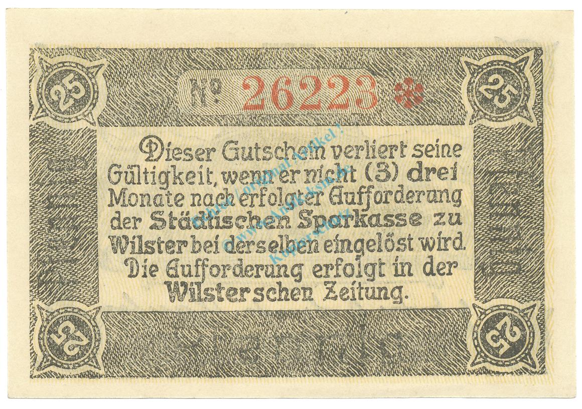 Wilster , Notgeld 25 Pfennig --WZ-- unc-kfr. Ti.7960.05.10 SH o.D. Verkehrsausgabe -0348-