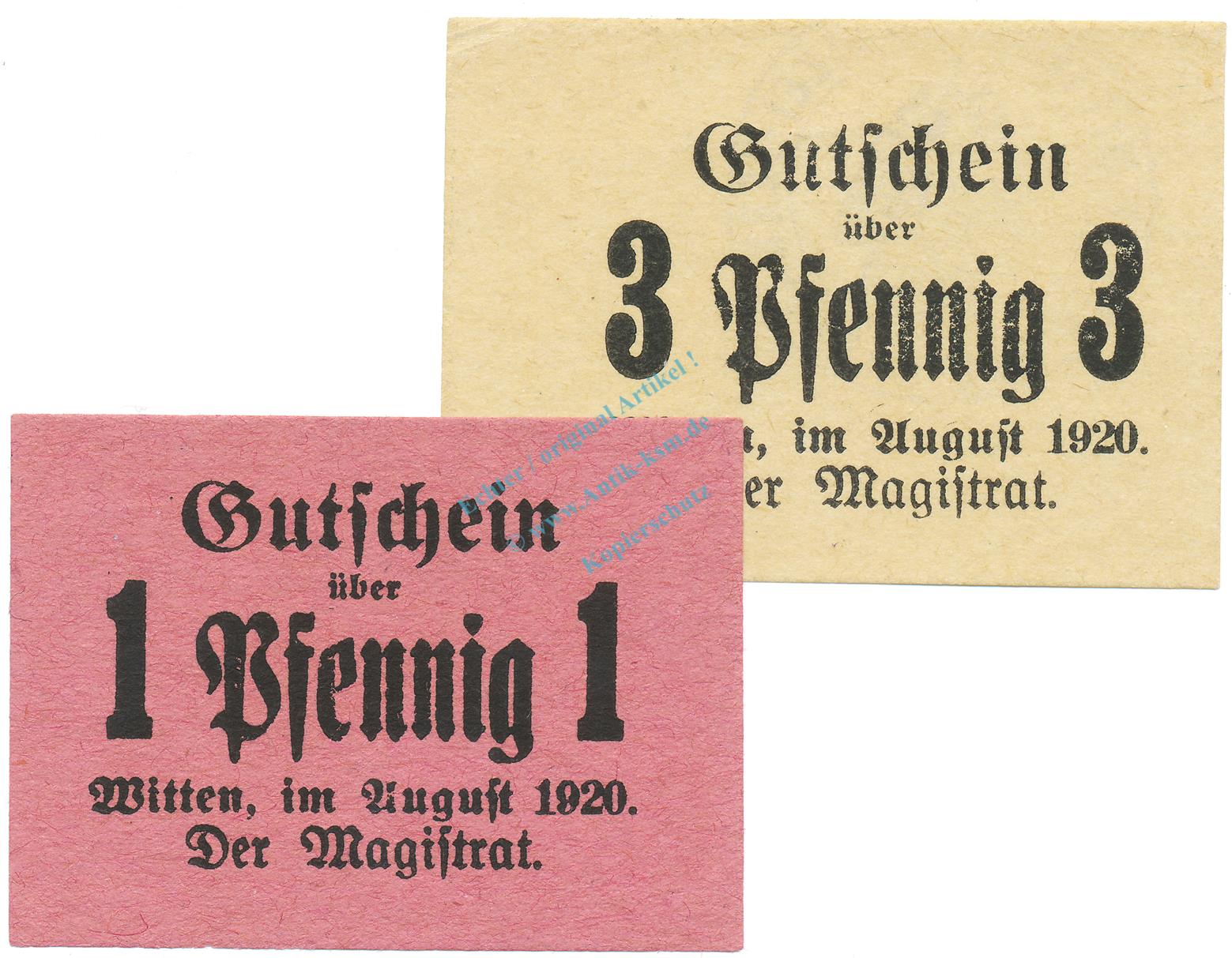 Witten , Notgeld Set mit 2 Scheinen unc-kfr. Tieste 8010.25.15-16 , Westfalen 1920 Verkehrsausgabe