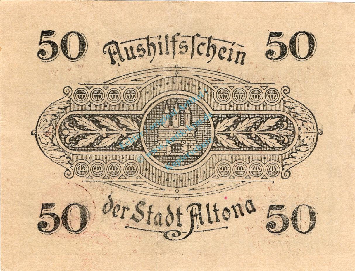 Altona , Notgeld 50 Pfennig Schein unc-kfr. Ti.0080.70.01 , Schleswig Holstein 1918 Verkehrsausgabe