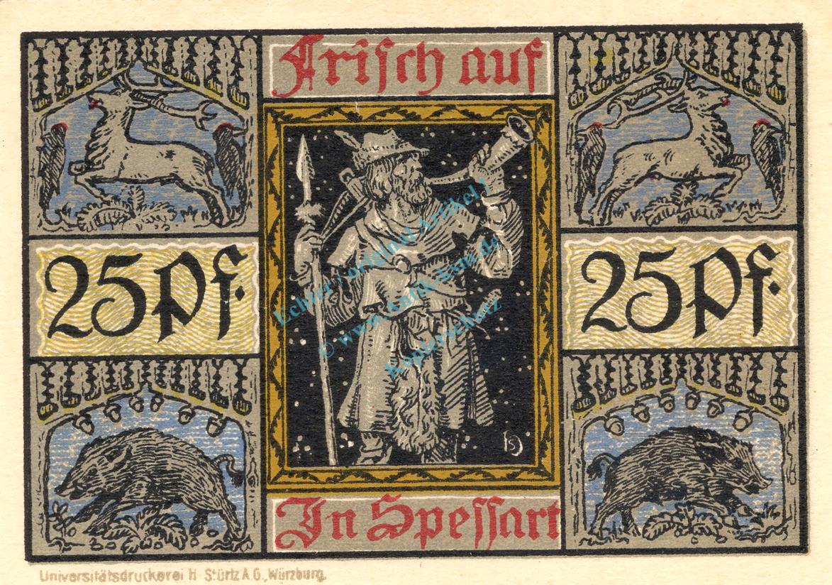 Aschaffenburg , Notgeld 25 Pfennig Schein unc-kfr. Ti.0220.10.15 , Bayern o.D. Verkehrsausgabe