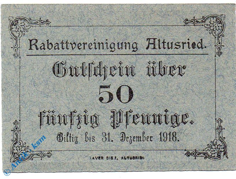 Notgeld Altusried , Rabattvereinigung , 50 Pfennig Schein , Tieste 0090.10.06 , Bayern Verkehrsausgabe