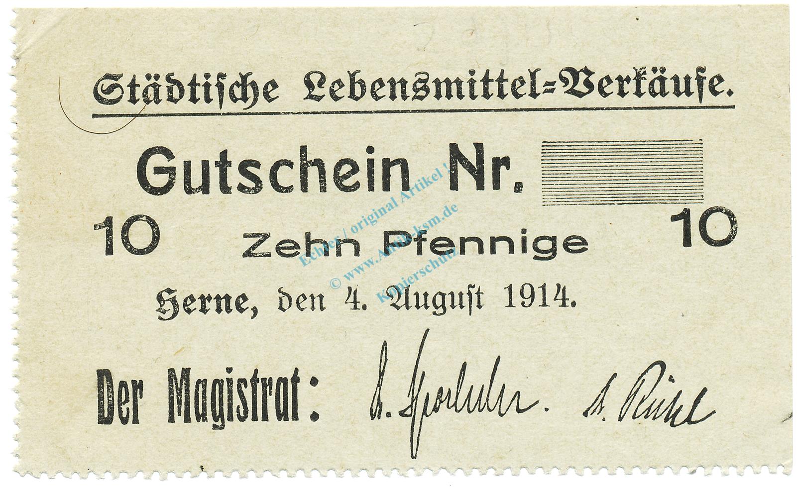 Herne , Notgeld 10 Pfennig Schein unc-kfr. Diessner 148.2.d , Westfalen 1914 Notgeld 1914-15