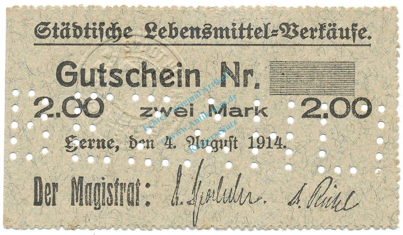 Herne , Notgeld 2 Mark Schein unc-kfr.E Diessner 148.5.c , Westfalen 1914 Notgeld 1914-15