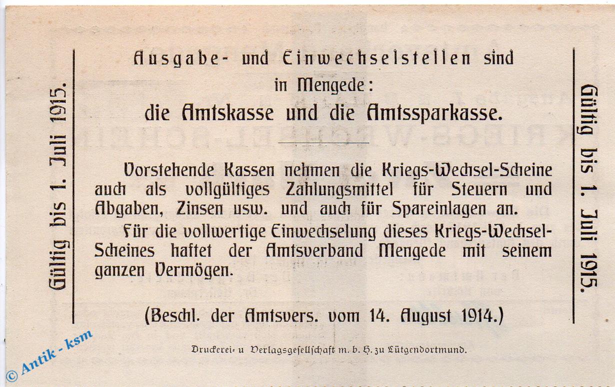 Notgeld Amtsverband Mengede , Notgeld 1914 / 1915
