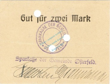 Osterfeld , Notgeld 1 Mark Schein gbr. Diessner 279.3 , Westfalen o.D. Notgeld 1914-15