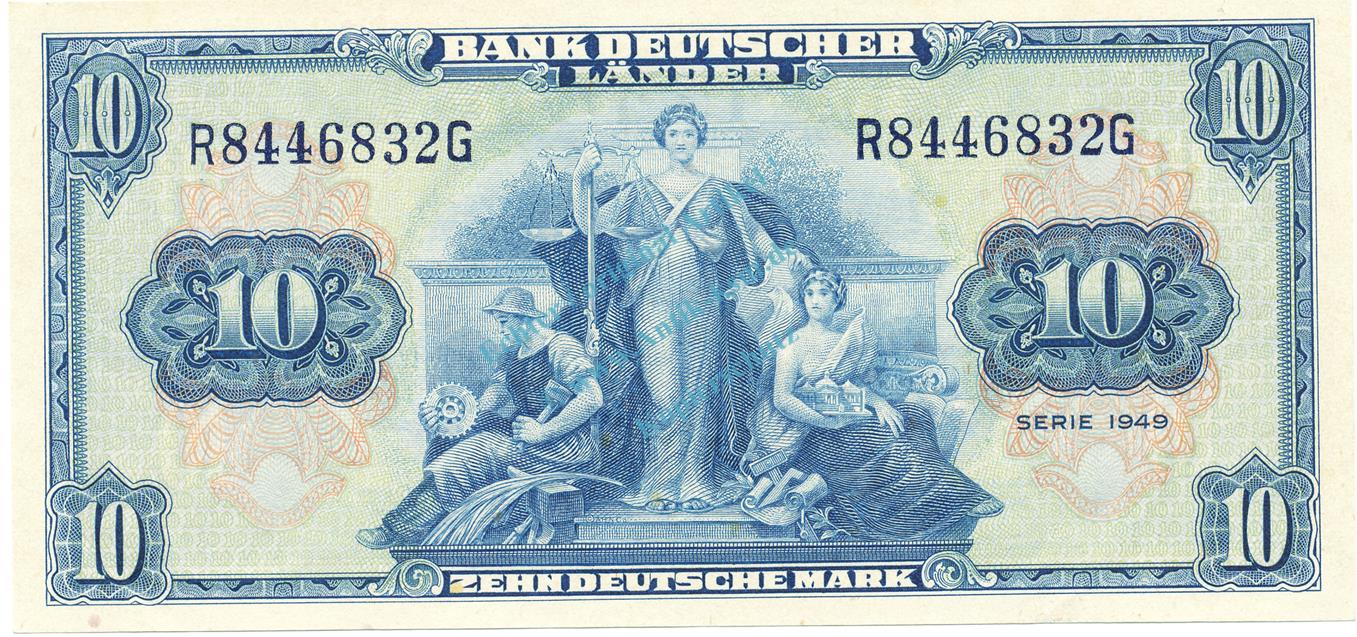10 Mark Schein L-gbr 1949 BRD-4, Ros.258, P.16.a , Bank deutscher Länder -1287-