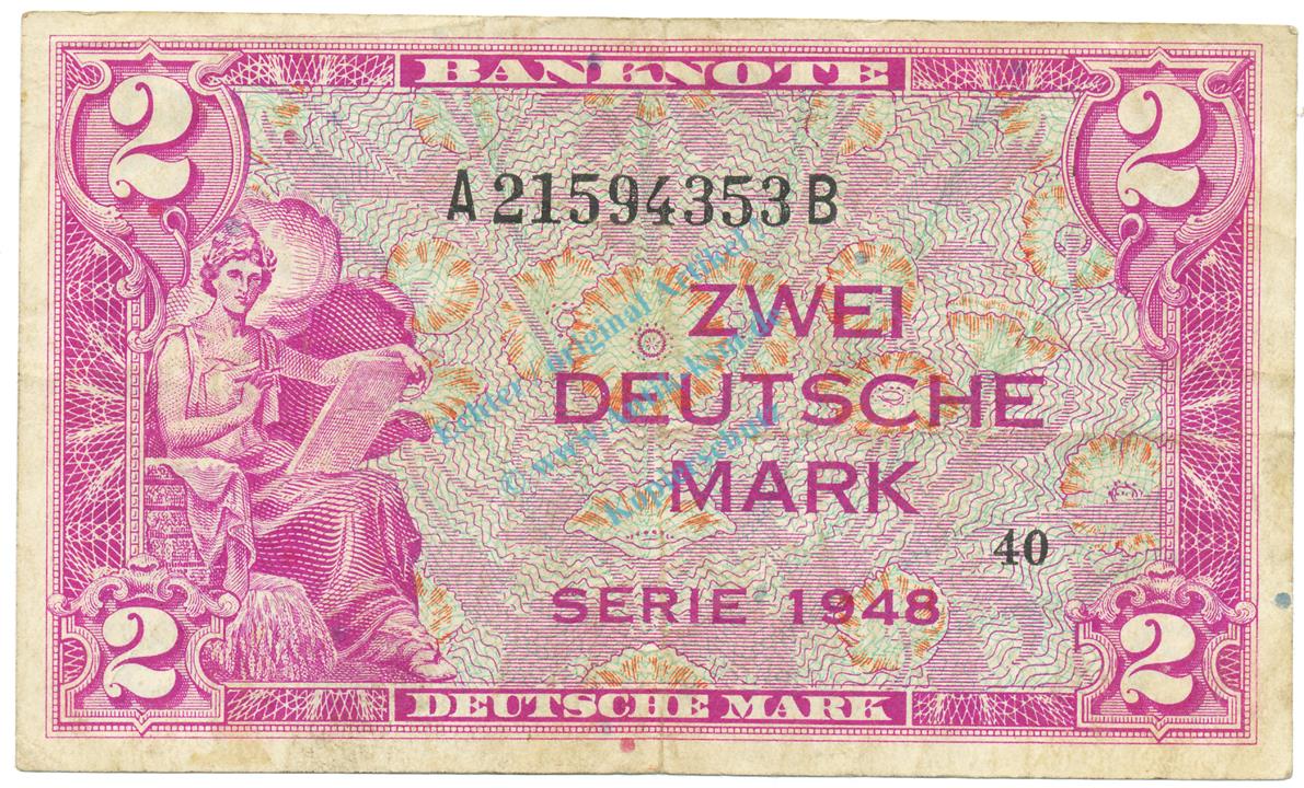 2 Mark Schein -A...B- gbr. 1948 WBZ-3, Ros.234, P.3.a , Bank deutscher Länder -1296-
