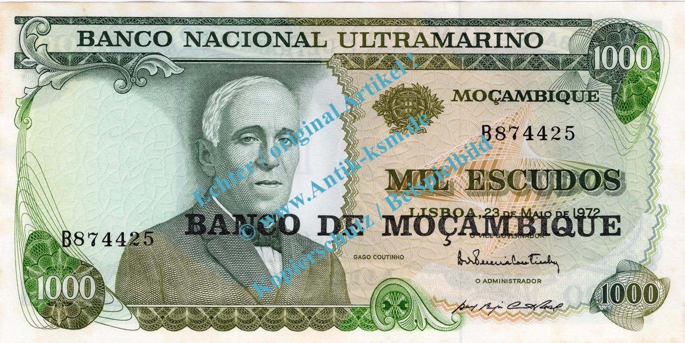 Banknote Mosambik - Mozambique , 1.000 Escudos Schein ND 1976 in unc , kfr