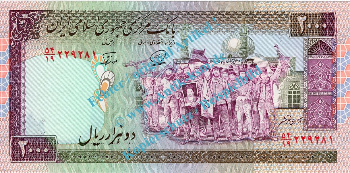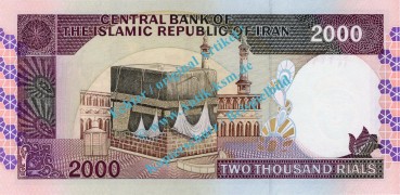 Banknote Iran , 2.000 Rials Schein -Kaaba in Mekka- ND 1986-2005 in unc , kfr
