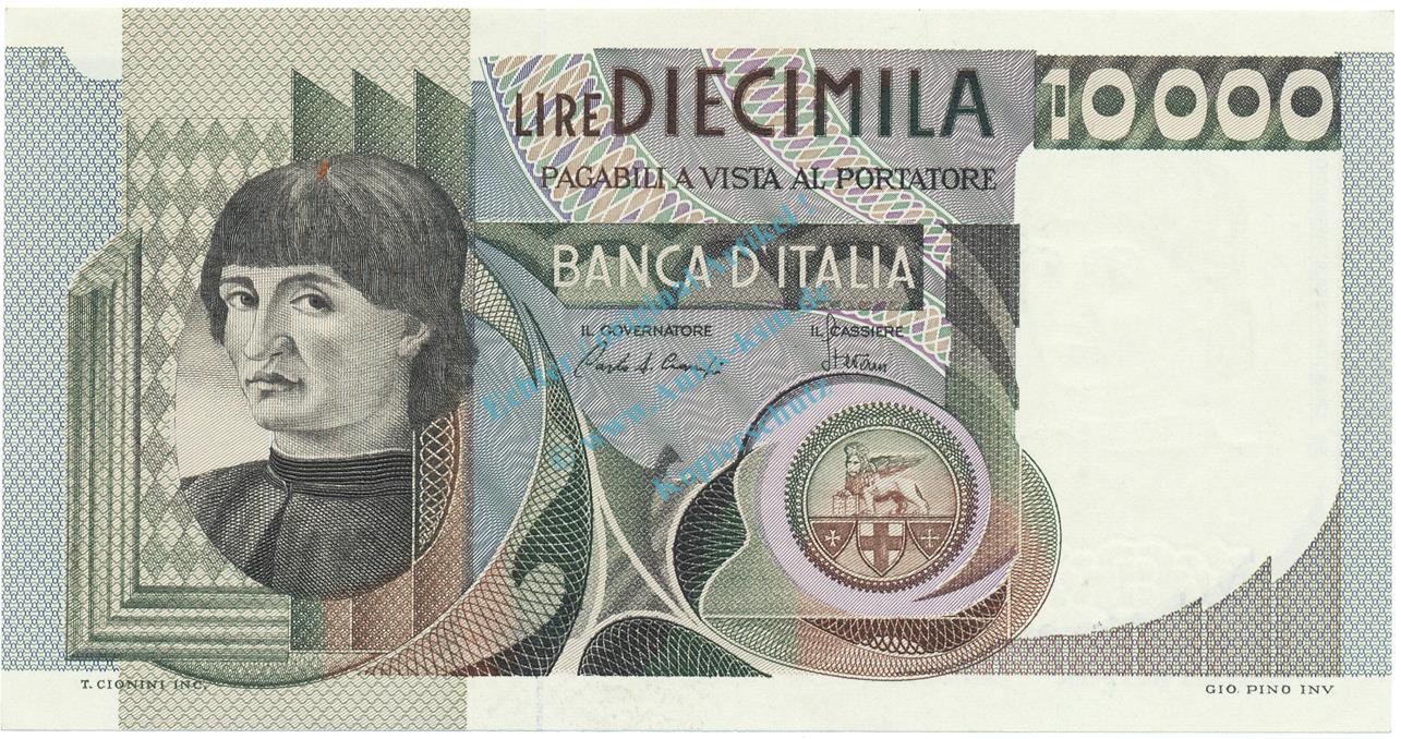 Banknote Italien , 10.000 Lire Schein unc-kfr. 1976-84, WPM.106 -Mann li.- 0336