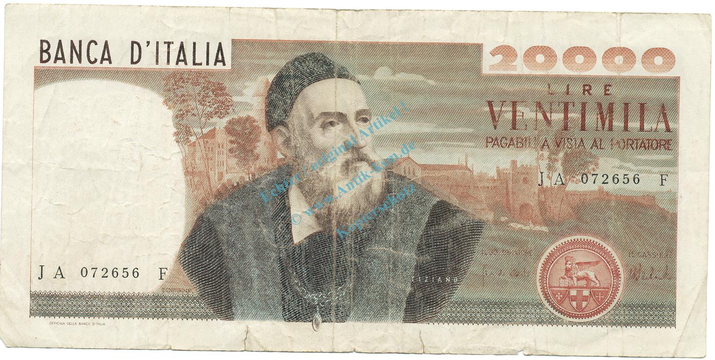 Banknote Italien , 20.000 Lire Schein 1975 WPM.104 -Titiano- gbr. -0334-