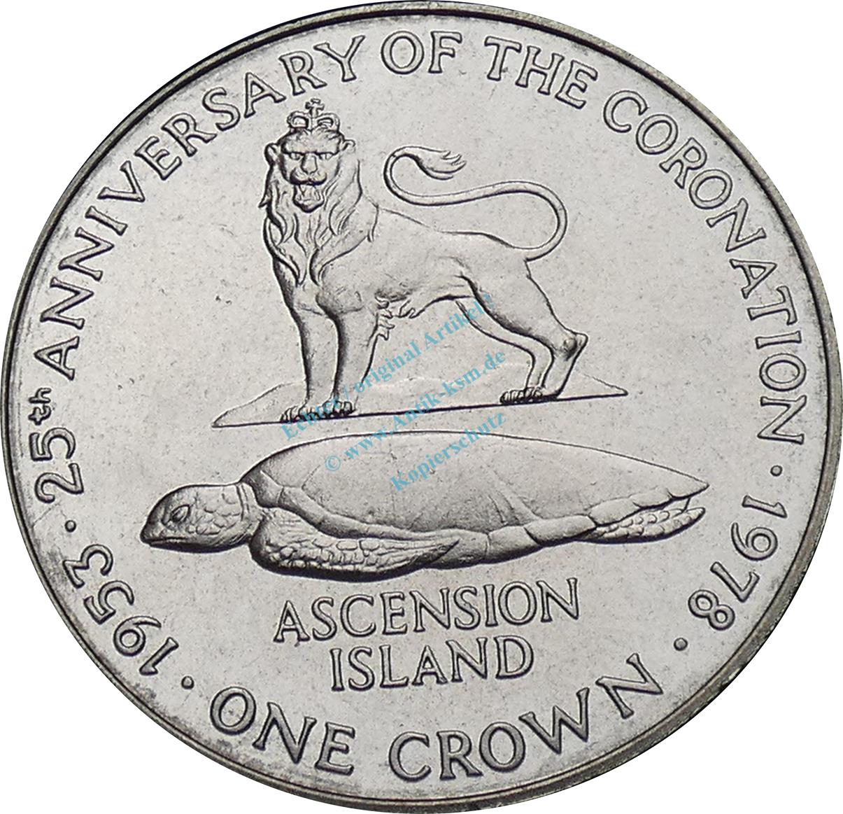 Ascension Island , 1 Crown Münze 1978 -25th Anniversary Elizabeth II- KM.1 vz-stgl -0285-