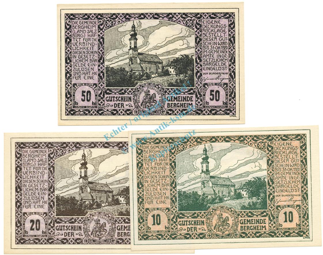Bergheim , Notgeld Set 3 Scheine unc-kfr. K-K.82.II , o.D. Salzburg -0502-