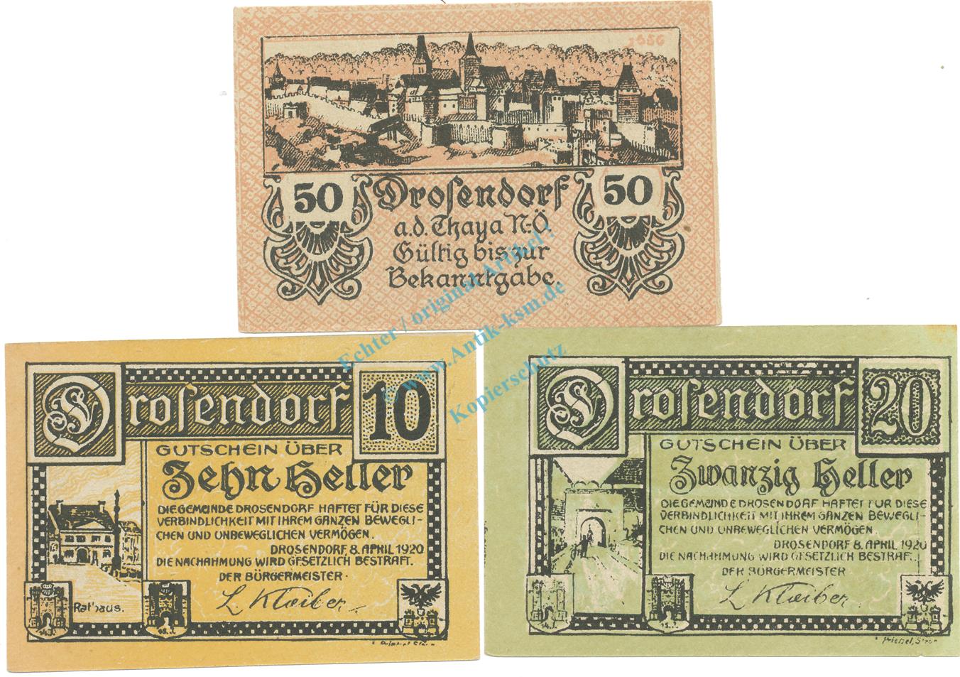 Drosendorf , Notgeld Set 3 Scheine unc-kfr. K-K.134 , o.D. Nieder Österreich -0515-