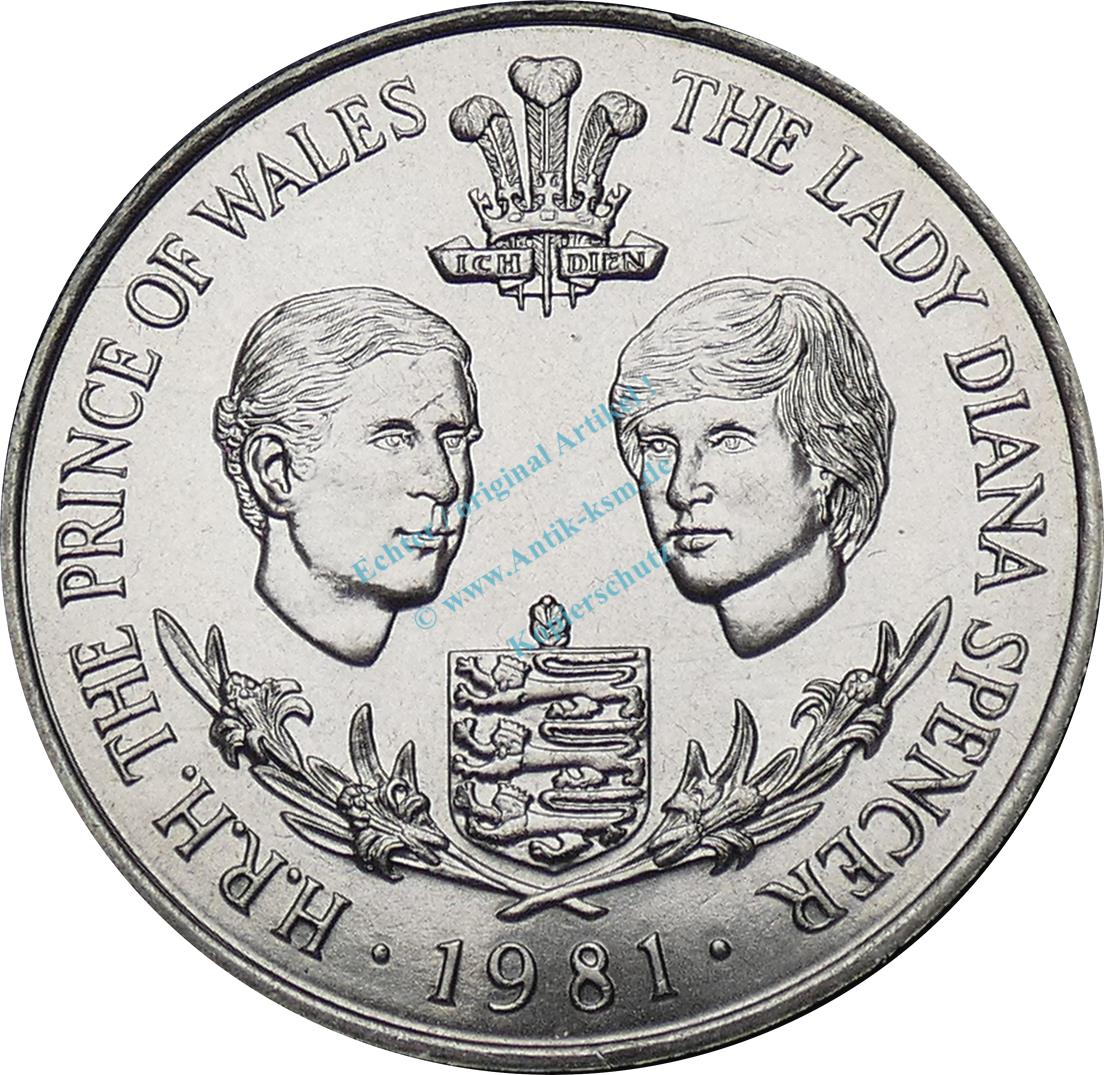 Guernsey , 25 Pence Münze 1981 -Prince Charles Lady Diana- KM.36 vz-stgl -0265-