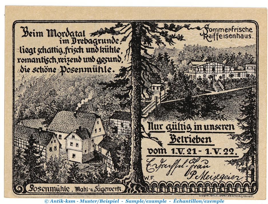 Gutschein / Banknote Posenmühle und Raiffeisenhaus Bucha , Seriennotgeld